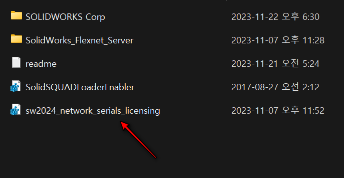 압축을 푼 폴더 내에 있는 sw2024_network_serials_licensing 파일을 실행합니다.