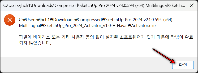이제 인증을 진행합니다. SketchUp_Pro_2024_Activator_v1.0-H_Hayat 의 압축을 풀어줍니다.