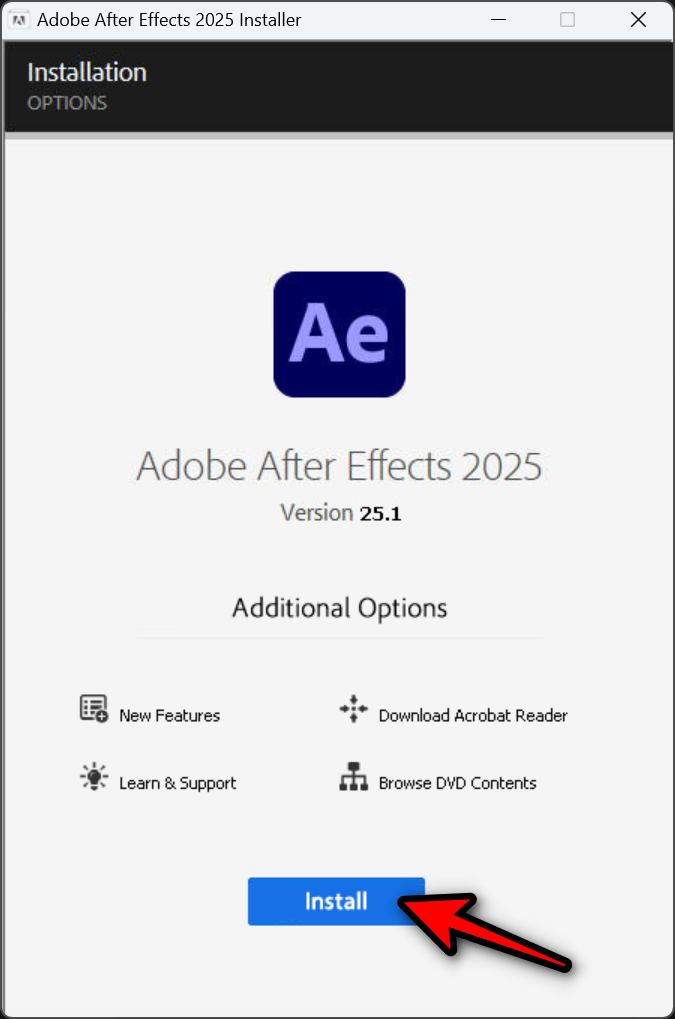 애프터이펙트 2025 설치 프로그램입니다. 안내에 따라 설치를 진행합니다. 인증은 자동으로 진행합니다.